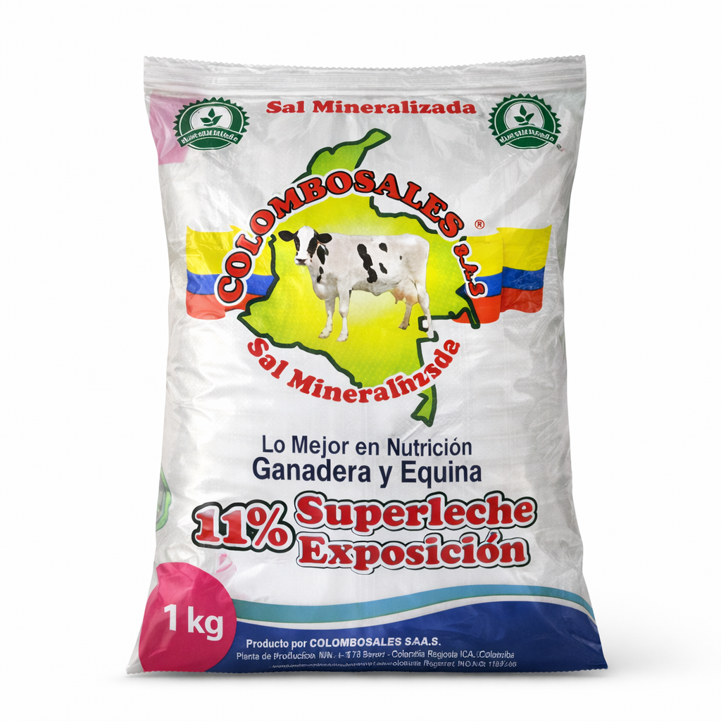 La Sal Mineralizada al 11% está formulada para suministrarse a voluntad en ganado bovino de leche con producciones entre 15 y 23 litros/día, especialmente en sistemas de pastoreo con forrajes de kikuyo, tréboles y ray grass. Su composición balanceada aporta los minerales esenciales que tu ganado necesita para mantener una salud óptima y mejorar la productividad.