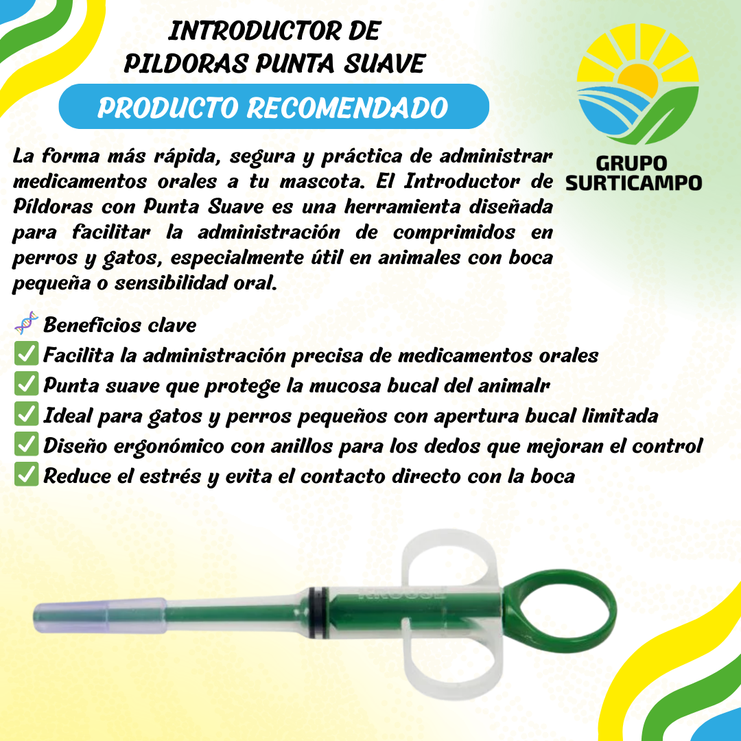 introductor de píldoras mascotas punta suave, aplicador de comprimidos perros gatos, herramienta administración medicamentos animales, introductor oral silicona mascotas Colombia, dispositivo veterinario para medicación oral, introductor de pastillas gatos boca pequeña, aplicador de tabletas mascotas sin estrés, producto veterinario administración segura, tienda virtual accesorios mascotas, salud oral administración medicamentos animales.