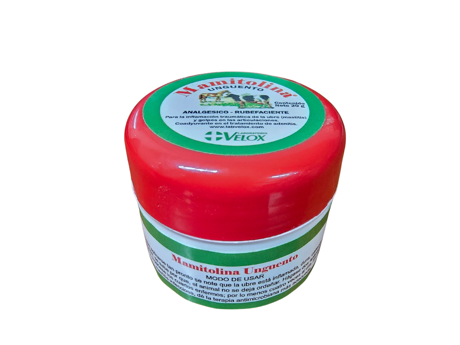 Mamitolina es un ungüento de uso externo formulado para el tratamiento de mastitis y lesiones inflamatorias no infecciosas en bovinos, ovinos, caprinos y porcinos. Su fórmula combina alcanfor, yodo y salicilato de metilo, ingredientes reconocidos por su acción analgésica, antiinflamatoria y rubefaciente, que mejoran la circulación y alivian el dolor en zonas afectadas.