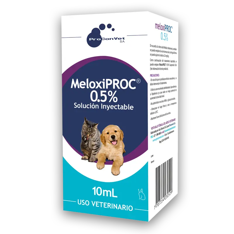 meloxiproc 0.5%, meloxicam inyectable veterinario, antiinflamatorio para perros, analgésico para gatos, tratamiento del dolor en animales, solución inyectable para cirugía veterinaria, meloxicam para mascotas, veterinaria dolor muscular perros, postoperatorio gatos medicina, analgésico veterinario Colombia, antiinflamatorio ICA registrado, meloxiproc solución inyectable, medicina ortopédica para mascotas, tratamiento musculoesquelético perros gatos